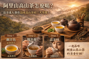 阿里山高山茶通常生長在海拔 1000公尺以上的山區,由於氣候涼爽、雲霧繚繞,使茶葉生長速度較慢,因此能累積更豐富的香氣與甘甜滋味。